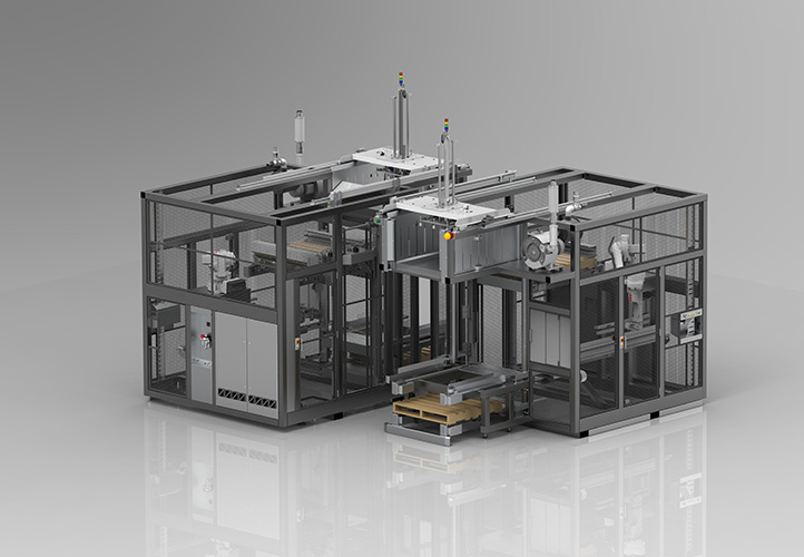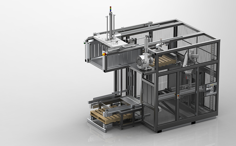 - Pallet movement: full pallets index to outfeed for forklift/AGV transfer, while new pallets are presented to maintain uptime.