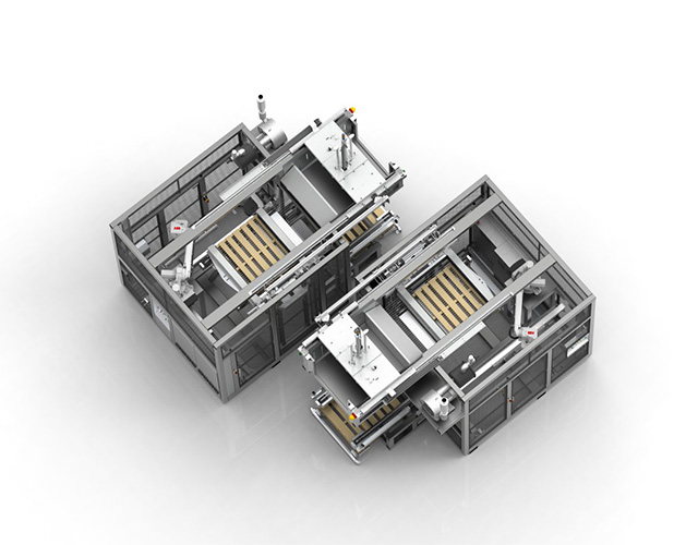 - Bi-directional operation: palletise to pallets or de-palletise back to conveyor