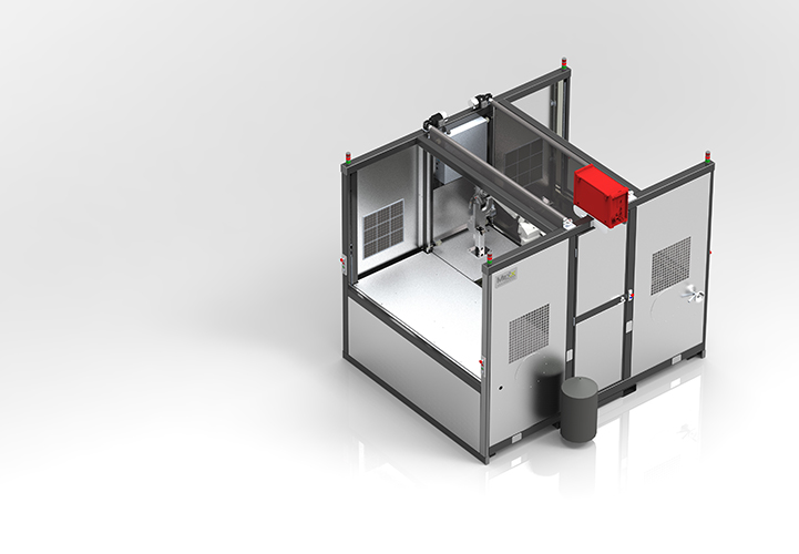 - Fully enclosed cell with weld-arc protection and interlocked access
