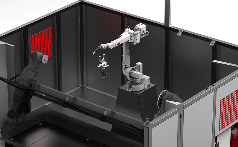 - Fully enclosed cell with guarding, interlocks, and weld-arc protection